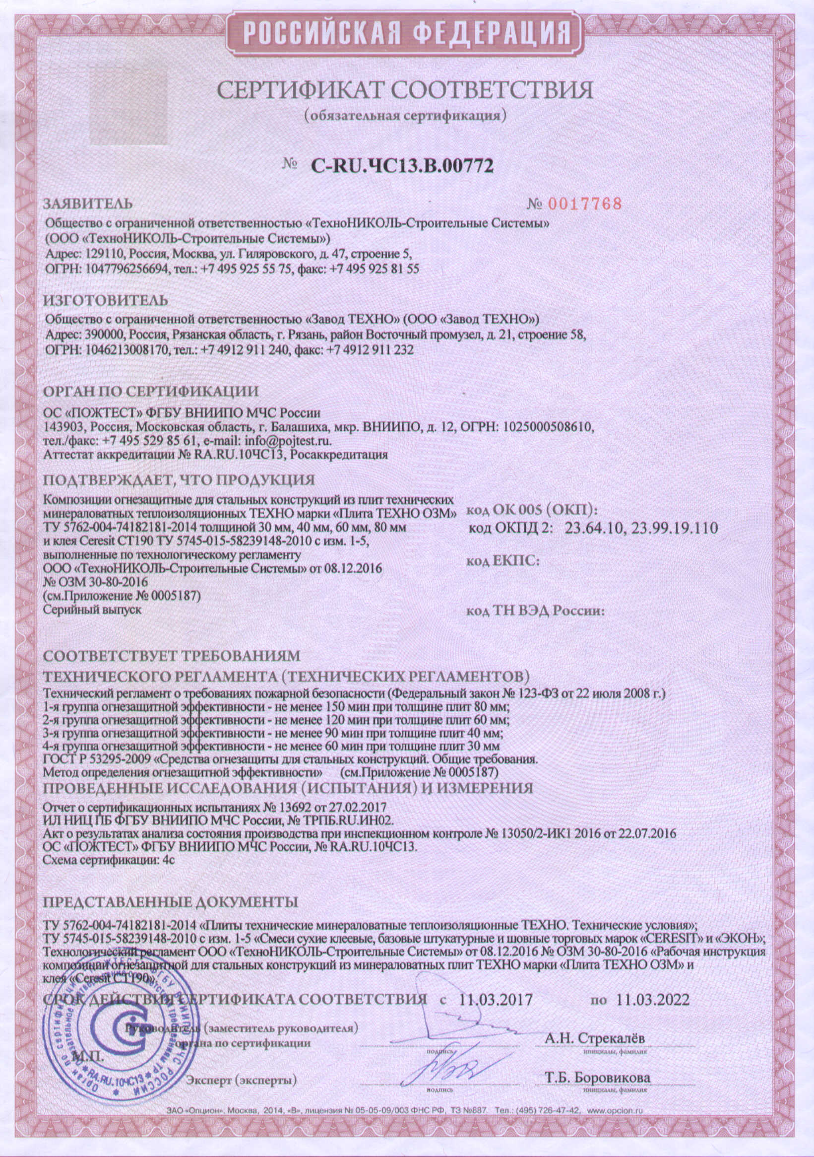 Подтвержденное сертификатами и действующими ГОСТ